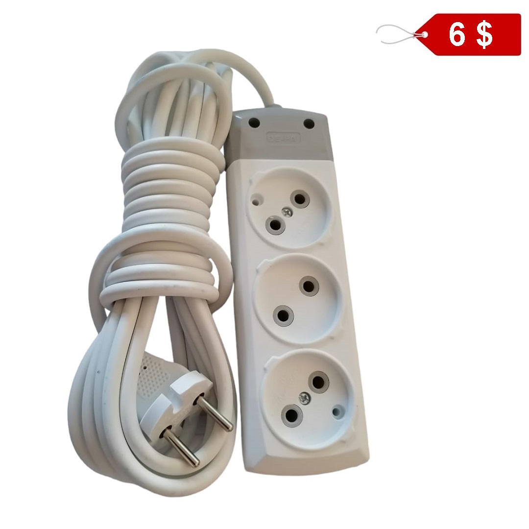 وصلة كهرباء 3 مخارج 220 فولط 16 امبير خطين 1مم*2 طول 5 امتار